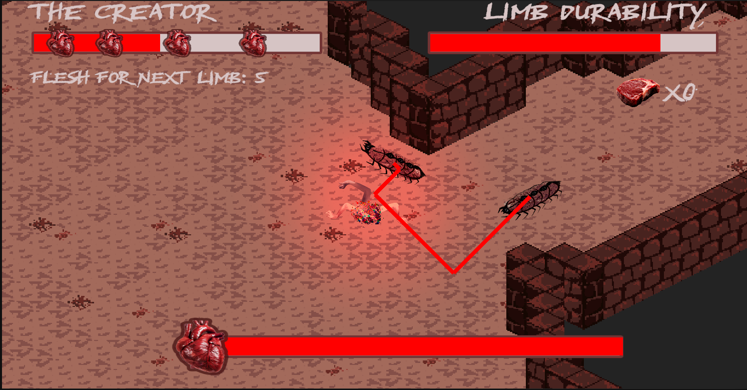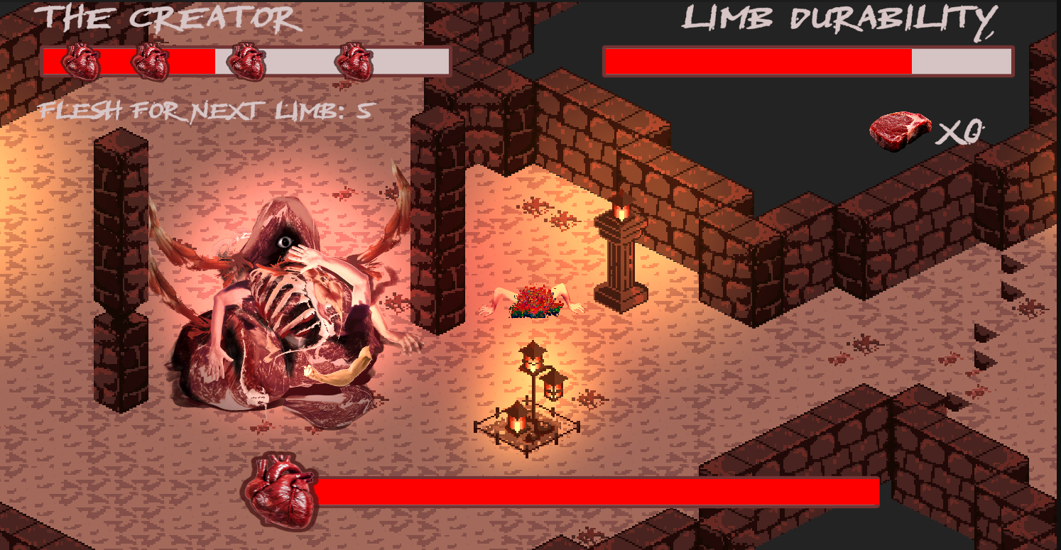 The HOMUNCULUS has created you to help gather flesh for his ever growing appetite. Explore the dungeon, kill various enemies to take their flesh, and deliver the flesh back to the Creator. Upgrade your limbs, learn new skills, and make sure not to neglect the HOMUNCULUS!